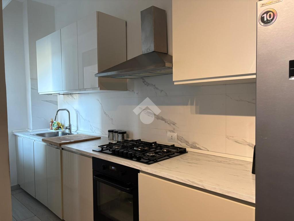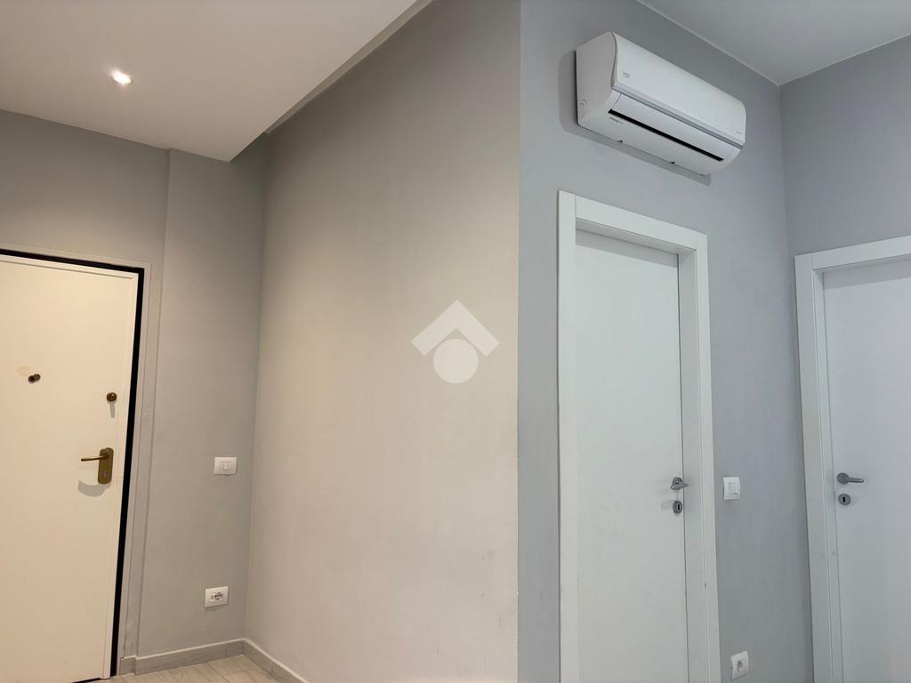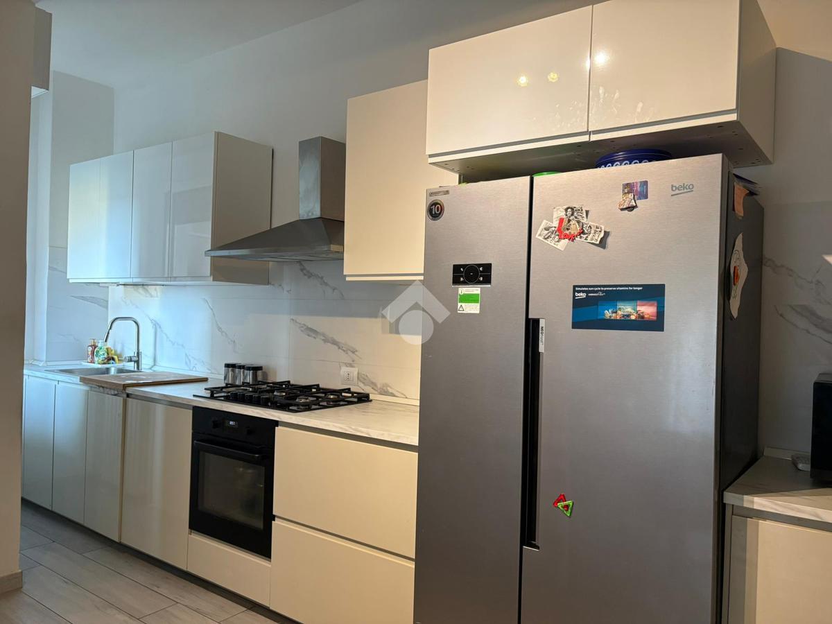 Internamente l’immobile è stato totalmente ristrutturato con finiture moderne e gli ambienti risultano essere ben divisi. Dall’ingresso si accede alla zona giorno: l’ampio salone con cucina a visita è pensato,in modo funzionale, per vivere e condividere tutti i momenti in famiglia o con gli amici. Da questo ambiente si accede direttamente al balcone, che dal quarto piano regala una vista aperta e garantisce luminosità durante tutto il giorno. A completare lo spazio, un pratico sfogo esterno loggiato, utile nell’uso quotidiano.