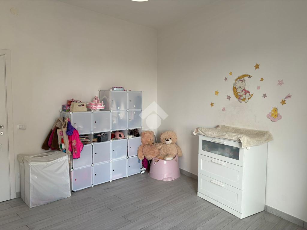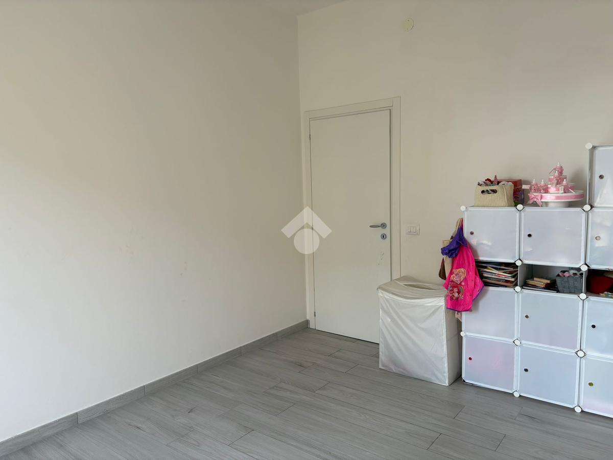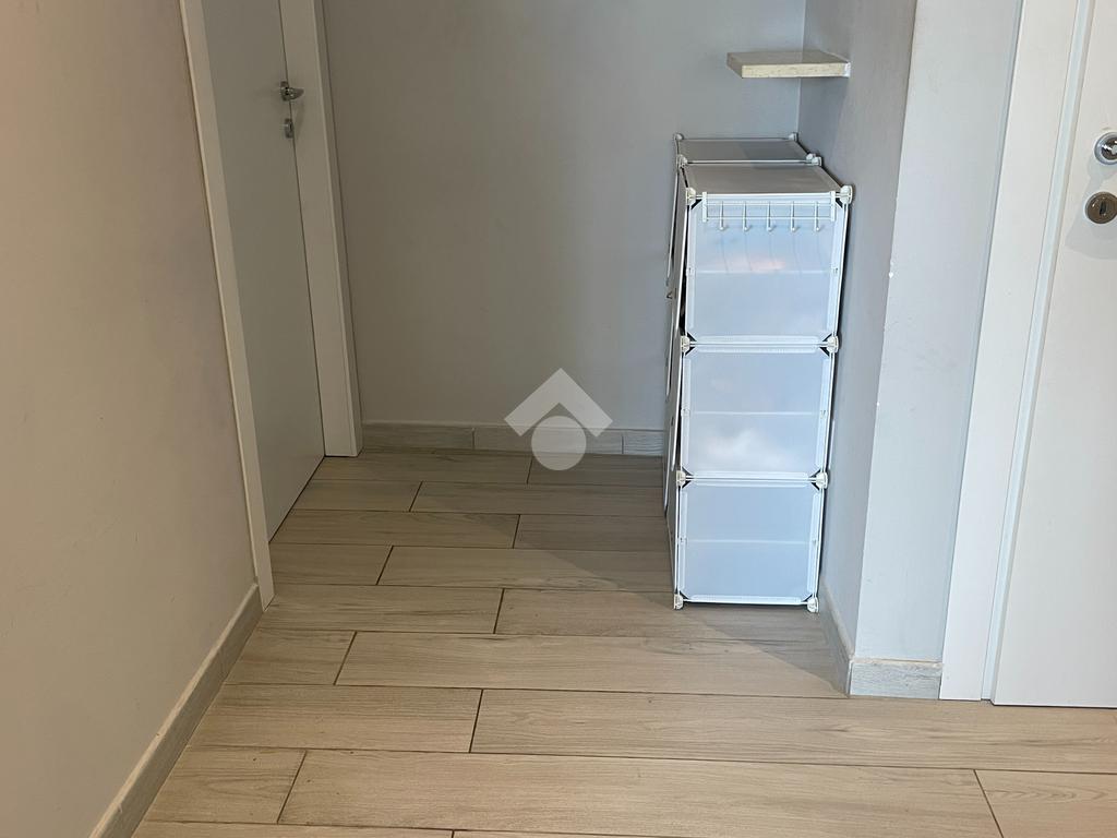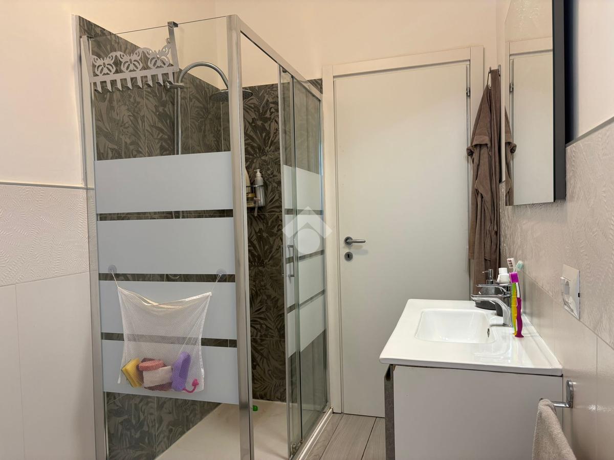 Il bagno, dotato di tutti i comfort, è munito di box doccia walk in e di una seconda loggia che può essere utilizzata come lavanderia. Nel bagno troviamo la continuità dell’elegante pavimento in gres porcellanato.