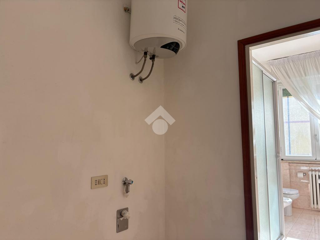 Il bagno, ristrutturato recentemente, è dotato di un antibagno con attacchi per la lavatrice e tutti i comfort necessari, tra cui il box doccia.